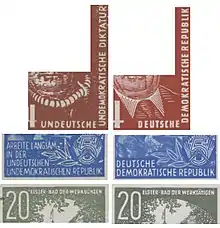 ![]() Counterpropaganda produced by the KgU- the left is the fake and the right is the original | |