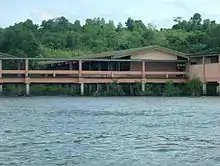 The floating of rubbish and sewage on the waters of Kampong Ayer is a persisting issue despite substantial measures and initiatives taken by various government and non-government agencies.[16] It is acknowledged that the sources of the problem are not simply from within Kampong Ayer but may also due to ineffective waste management on land, specifically in the vicinity of upstream tributaries and streams of the Brunei River, in which Kampong Ayer lay along its downstream flow.[17] Measures have been implemented by the government which include upgrading and installation of sewage treatment works in the catchment areas, as well as installation of rubbish collection system in the villages of Kampong Ayer.[17][18] However, complete success is still yet to be seen. Systematic sewage disposal in Kampong Ayer itself is only feasible on public housing villages, namely Bolkiah 'A', Bolkiah 'B' and Sungai Bunga, where they have organised residential layout, where as in the traditional villages, which constitute the majority of Kampong Ayer areas, such disposal system is still not yet available.[17]