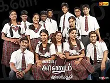 Kana Kaanum Kaalangal (transl. Era of Dreams) is a Tamil drama soap opera that aired in Star Vijay, Monday to Thursday, from 30 October 2006 to 7 June 2013. [4][5][6] It was the first soap in Tamil television that focused on school life. Due to the success of the show, a sequel called Kana Kaanum Kaalangal Kallooriyin Kadhai was made.[7][8][9][10][11][12] Later another sequel to the serial called Kana Kaanum Kalangal Kalloori Saalai was also made. Both the sequels focused on college life. It was re-aired on Star Vijay Super from 16 January 2017, Monday through Friday at 8:00PM.