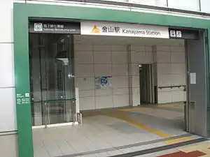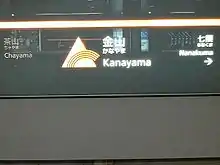 Kanayuma Station (金山駅) is a subway station on the Fukuoka City Subway Nanakuma Line in Jōnan-ku, Fukuoka in Japan. Its station symbol is a picture of a rainbow in front of a triangle which motif are 金 and a hill in orange.