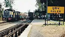 The Kangra Valley Railway is a 2 ft 6 in (762 mm) gauge railway that runs from Pathankot, Punjab to Jogindernagar in Himachal Pradesh. It runs through the sub-Himalayan region of Kangra Valley and is 164 km (101.9 mi) long. It is on the UNESCO World Heritage Sites tentative list.[1] The railway is part of the Firozpur division of Northern Railway. It is the longest Narrow Gauge line in India and also the longest 2 ft 6 in (762 mm) Gauge Railway in the World. The highest point on this line is Ahju station at an elevation of 1,290 meters (4,230 ft). There are 33 stops and 950 bridges.[2]