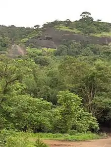 The Kanheri Caves (Kānherī-guhā [kaːnʱeɾiː ɡuɦaː]) are a group of caves and rock-cut monuments cut into a massive basalt outcrop in the forests of the Sanjay Gandhi National Park, on the former island of Salsette in the western outskirts of Mumbai, India. They contain Buddhist sculptures and relief carvings, paintings and inscriptions, dating from the 1st century CE[1] to the 10th century CE. Kanheri comes from the Sanskrit Krishnagiri, which means black mountain.[2]