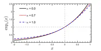 The Kaniadakis exponential (or κ-exponential) function is a one-parameter generalization of an exponential function, given by: