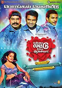 Kanna Laddu Thinna Aasaiya (transl. My dear, would you like to eat Laddu?) also known as KLTA, is an Indian 2013 Tamil-language romantic comedy film directed by KS Manikandan. It stars Santhanam, Srinivasan, newcomer Sethu and Vishakha Singh.[3] The film marked Santhanam's venture into film production with his Handmade Films. The film was co-produced by Rama Narayanan while S. Thaman scored the film soundtrack.[4] The plot revolves around three friends who fall for the same girl, who has just moved into their neighbourhood. The movie released on 13 January 2013 to positive reviews and became a blockbuster and pongal winner of 2013 at the box office. The movie is based on Indru Poi Naalai Vaa by K. Bhagyaraj.