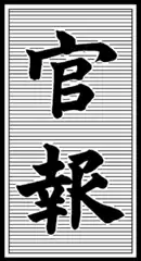 Japan traditionally relied on the Kōsatsu, a wooden plaque placed at shukuba and other important places to let the public in general know the shogun's nationwide or daimyo's local proclamations.[3] As the people's literacy rate improved and the modern nation emerged under the Meiji government, the Kōsatsu was abolished in 1873 and eventually replaced by the Kanpō, the Japanese government gazette, now available on the Internet.