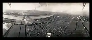 The stockyards straddled the state line across the Kansas river with two thirds of it in Kansas and one third in Missouri. At its peak 16 railroads converged at the yards.