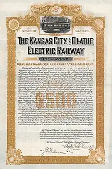 Bond of the Kansas City and Olathe Electric Railway from 1 September 1903