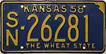 In 1956, the United States, Canada, and Mexico came to an agreement with the American Association of Motor Vehicle Administrators, the Automobile Manufacturers Association and the National Safety Council that standardized the size for license plates for vehicles (except those for motorcycles) at 6 inches (15 cm) in height by 12 inches (30 cm) in width, with standardized mounting holes.[1] The 1955 (dated 1956) issue was the first Kansas license plate that complied with these standards.