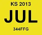 2018–present | Screened black serial on white plate with "KANSAS" in black at top | A1234 | ||