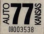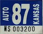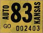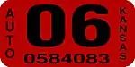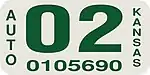 The owner can also choose to use an original Kansas license plates with correct year stickers instead (Year of Manufacture). | |