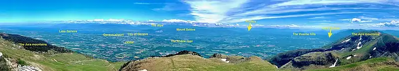| Lowest point | 332 m (1,089 ft): Rhône at Chancy |