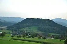 Near the southern shore of the lake of Ägeri is the site of the Battle of Morgarten, won by the Swiss in 1315.[4] In this battle the powerful Habsburgs were defeated. The hamlet of Morgarten (Municipality of Oberägeri) borders the canton of Schwyz and is home to the Morgarten Battle Monument (German: Morgarten Denkmal). The actual battlefield is just across the border in the hamlet of Schornen (Municipality of Sattel) in the canton of Schwyz.