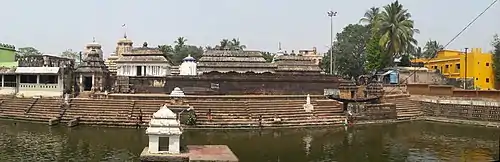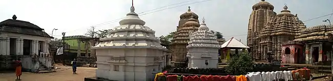 The dominant feature of the temple is the 60 foot high temple and its adjacent pond, surrounded by stone steps. The temple is a satellite of the main temple in Bhubaneswar, the Lingaraj temple. Both these temples, like other temples in India are centres of social, political, and educational activities. Until the middle of the 20th century, the temple dominated the economic, political and ritual life of the place.[1] The temple was built during 14th Century A.D. during Gajapati rule of Kapilendra Deva. Inscription of Kapilendra deva and other architectural sculptural fragments suggest the original temple could be earlier than 11th Century A.D.