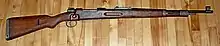 The Karabiner 98 kurz (German: [kaʁaˈbiːnɐ ˌʔaxtʔʊntˈnɔʏntsɪç ˈkʊɐ̯ts]; "carbine 98 short"), often abbreviated Karabiner 98k, Kar98k or K98k and also sometimes incorrectly referred to as a K98 (a K98 is a Polish carbine and copy of the Kar98a), is a bolt-action rifle chambered for the 7.92×57mm Mauser cartridge. It was adopted on 21 June 1935 as the standard service rifle by the German Wehrmacht.[1] It was one of the final developments in the long line of Mauser military rifles.