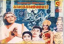 Karaikkal Ammaiyar is a 1973 Indian Tamil Saiva mythological film, written and directed by A. P. Nagarajan[1] and produced by EVR Films. The film's soundtrack was composed by Kunnakudi Vaidyanathan. The film stars Lakshmi, who played the younger-age Punithavathi role, and K. B. Sundarambal, who played the old-age role—as the title characters, with R. Muthuraman, Manorama, Suruli Rajan, V. S. Raghavan, S. V. Sahasranamam, Sivakumar and Srividya playing supporting roles. Karaikkal Ammaiyar is one of the three women saints among the 63 Nayanmars and is considered one of the greatest figure of Tamil literature. She was born in Karaikkal during the Chola period, a maritime center. Ammaiyar was a great devotee of Lord Shiva and she is believed to have lived during the 6th century, named Punithavathi.[2][3]