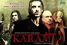 Karam (transl. Deed/Karma) is a 2005 Indian Hindi-language action thriller film[3][4][5] directed by cinematographer Sanjay F. Gupta, in his directorial debut. Starring John Abraham, Priyanka Chopra and Bharat Dabholkar, the film follows John, a professional assassin who ends up unintentionally killing an innocent family during a mission and becomes traumatized, eventually tendering his resignation. This does not go down well with his boss, who kidnaps John's wife and holds her hostage. In order to win back her freedom, John must complete one last job: killing some of the city's top men within a limited period of time. The film co-stars Vishwajeet Pradhan, Shiney Ahuja, Murli Sharma, Rajesh Khera and Aanjjan Srivastav.