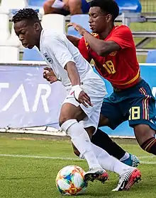 ![]() Dembele (left) playing for England U17 in 2019 | |||
