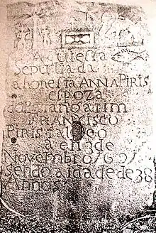 The tombstone of Patangatim Francisco Piris' wife from St. Thomas Church, Jinthupitiya illustrated here, shows that the Karava heraldic symbols: Pearl umbrella, Palm tree, caparisoned Elephant and Fish symbol were used even on tombstones (JRASCB XXII 387)
