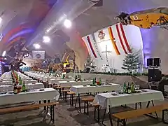 Driving on Austrian as well as on Slovenian motorways requires a toll sticker. However, driving through the tunnel doesn't require any.[18][19] Instead, a special toll (2021 rate) of 7.60 euros[20] (20% VAT included) is imposed on drivers of vehicles up to 3.5 tons for using the tunnel. The toll is collected for the section from the closest on-ramp to the tunnel on the Austrian side to the Austrian/Slovenian border in the middle of the tunnel.[21] The Slovenian vignette is not required as the tunnel is not part of motorway sections with the mandatory use of vignettes.[19] The toll from the Slovenian side is also €7.60.