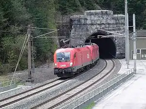 The Karawanks Tunnel (German: Karawankentunnel, Slovene: Predor Karavanke) is the fourth longest railway tunnel in Austria and the longest in Slovenia with a length of 7,976 metres (26,168 ft) (4.96 miles). It passes under Rožca Saddle between Rosenbach in southern Austria and Jesenice in northern Slovenia.
