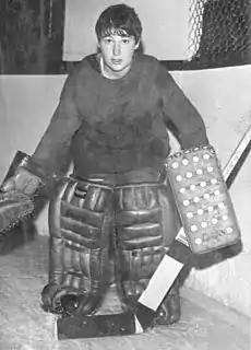 Karen Koch [pronounced "Cook"] (born 1951) is an American former ice hockey goaltender. She played for the Marquette Iron Rangers in the United States Hockey League during the 1969–70 season.[1][2] She signed a contract for $40 per game which made her the first professional female hockey player in North America.[1] As of 2000, as far as her coach, Leonard "Oakie" Brumm, knew, she was the first in the world.[2]