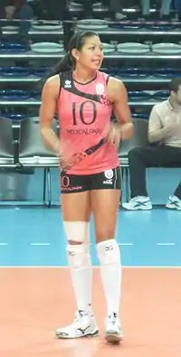 She won the Best Scorer award at the 2015 Pan American Games, losing the bronze medal to the Dominican Republic 1-3.[4]