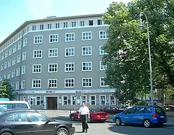 Constructed in 1912 as a factory, the building was purchased by the Communist Party of Germany (Kommunistische Partei Deutschlands, KPD) in 1926. It became the seat of its Central Committee and was named in honor of Karl Liebknecht, the KPD leader who was murdered by a paramilitary unit in January 1919. After Adolf Hitler was appointed as German chancellor, the Berlin police raided the headquarters, and by March 1, the Nazi swastika flag was flying over the building. Renamed the Horst Wessel House, the building at first served as a district police station and detention center in which Jews and political opponents were tortured. In 1935, the finance department of the state of Prussia moved into the building.