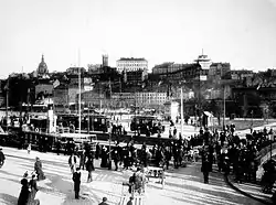 Karl Johanslussen ("Lock of Charles John") is a lock and a sluice, along the Söderström river connecting and controlling the flood discharge between Riddarfjärden, the easternmost part of Lake Mälaren, and Saltsjön, the section of the Baltic Sea reaching into central Stockholm, Sweden. The lock is 75 metres long, 10 metres wide and 3.90 metres deep. The maximum height is 3.8 metres.[2] The lock is closed from 2016 to 2021 due to large reconstruction works in the area.