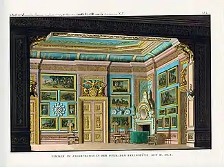 In Italy and Greece[8] he had assembled a large collection of views, which he put to use in the diorama theatre, based on Daguerre's, which he opened with his brothers in 1827 in the Georgenstraße, Berlin, which together with the Gropius's adjacent shop for art publications became a great success.[9]