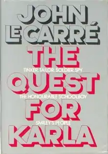 Smiley Versus Karla (1982), by John le Carré, originally published as The Quest for Karla, is an omnibus edition of three novels concerning George Smiley's fight against Karla, his counterpart in Moscow Centre (the Soviet KGB). The "Karla Trilogy" includes: