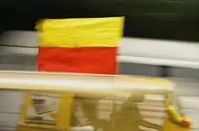 Rajyotsava day is celebrated with great joy and vigour all over the state of Karnataka. The entire state wears a festive look on this day as the red and yellow Kannada flags are hoisted at different strategic locations across the state and the Kannada anthem ("Jaya Bharatha Jananiya Tanujate") is chanted.[9] The flag is hoisted at political party offices and several localities even as youth in many areas take out processions on their vehicles.[10] Religion not being a factor, the Rajyotsava is celebrated by Hindus, Muslims[11] and Christians as well.[12][13]
