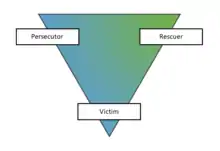 The Karpman drama triangle is a social model of human interaction proposed by Stephen B. Karpman. The triangle maps a type of destructive interaction that can occur among people in conflict.[1] The drama triangle model is a tool used in psychotherapy, specifically transactional analysis. The triangle of actors in the drama are persecutors, victims, and rescuers.