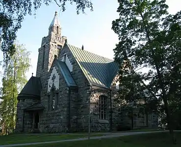 The older wooden church has been transported into the open-air museum of Seurasaari, Helsinki.[2]