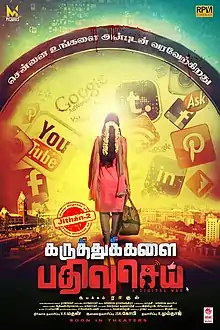 Karuthukalai Pathivu Sei (transl. Record the opinions) is a 2019 Indian Tamil-language social thriller film directed by Rahul Paramahamsa. The film stars Upasana RC in the lead role. The theme of the film is based on the challenges and issues confronted by women in the society due to social media.[1][2][3] Principal photography of the film commenced in late 2018. The film was released on 13 December 2019 and opened to negative reviews.