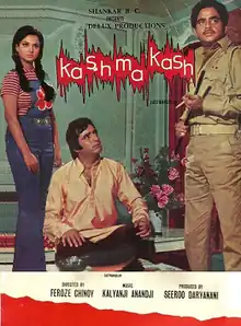 Kashmakash is a 1973 Indian Hindi-language film directed by Feroze Chinoy, starring Feroz Khan, Rekha, Shatrughan Sinha, Asha Sachdev, along with Ranjeet, Rehman, I. S. Johar, Padma Khanna.[1] Loosely based on James Hadley Chase's novel Tiger by the Tail.