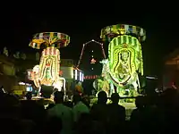 The temple priests perform Puja (rituals) during festivals and on a daily basis. The temple rituals are performed six times a day; Kalasanthi at 6:00 a.m., Irandam Kalm at 9:00 a.m., Uchikalam at 12:00 a.m., Sayarakshai at 6:00 p.m., Irandam Kalm at 7:30 p.m., and Arthajamam at 9:00 p.m. Each ritual comprises four steps: abhisheka (sacred bath), alangaram (decoration), naivethanam (food offering) and deepa aradanai (waving of lamps) for Viswanathar and Visalakshi. There are weekly rituals like somavaram (Monday) and sukravaram (Friday), fortnightly rituals like pradosham, and monthly festivals like amavasai (new moon day), kiruthigai, pournami (full moon day) and sathurthi. Masi Maham during the Tamil month of Maasi (February–March), Shivaratri in February- March and Panguni Uthiram during Panguni are the major festivals celebrated in the temple.[3] Twelve Shiva temples are connected with Mahamaham festival which happens once in 12 years in Kumbakonam. They are Kasi Viswanathar Temple, Kumbeswarar Temple, Someswarar Temple, Nageswara Temple, Kalahasteeswarar Temple, Gowthameswarar Temple, Kottaiyur Kodeeswarar temple, Amirthakalasanathar Temple, Banapuriswarar Temple, Abimukeswarar Temple, Kumbakonam, Kambatta Visvanathar Temple, and Ekambareswarar Temple.[7] The temple is counted as one of the temples built on the banks of River Kaveri.[8]