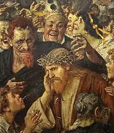 As his reputation grew, he was commissioned to do decorative works. One of his first involved frescoes at the Ratskeller in the New Town hall (1890), where he created humorous scenes with texts.[3] A particularly notable assignment involved decorations at the Hessisches Staatstheater (1894), for which he was awarded the Order of the Red Eagle by Kaiser Wilhelm II.