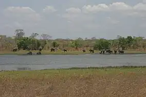 The vegetation consists mainly of Miombo woodland with grassy river channels, known locally as Dambos. A number of rivers flow through the park, notably the Dwangwa and the Lingadzi and its tributary, the Lifupa, which creates an important spot for hippo surveyal in the park at the Lifupa Lodge. Kasungu is known for its population of elephants although is threatened by poaching. Other animals native to the park include Sable antelopes, roan antelopes, kudus, impala and hartebeest and plains zebra and African Buffaloes. Predators in Kasungu National Park include, hyenas, Cape wild dogs and servals.[1] The South African cheetah was thought to be extinct in the late 1970s.