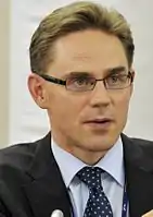 The Katainen Cabinet (June 22, 2011[1]—June 24, 2014) was the 72nd cabinet of Finland, formed as a result of the 2011 post-parliamentary election negotiations between the Finnish parliamentary parties. Led by Prime Minister Jyrki Katainen of the National Coalition Party (NCP), 12 ministers of the 19-minister government represented the NCP and the Social Democratic Party (SDP), while the Left Alliance, the Green League, the Swedish People's Party (RKP) and the Christian Democrats share seven minister portfolios. On June 22, the Parliament confirmed Katainen's election as the Prime Minister and President Tarja Halonen inaugurated the government. Two Left Alliance MPs voted against Katainen, for which they were formally reprimanded by the Left Alliance's parliamentary group (and later expelled from the group).[1][2] On 25 March 2014, the rest of Left Alliance left the cabinet over dispute on a package of spending cuts and tax rises.[3]