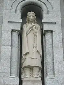 Statue of Saint Kateri Tekakwitha by Cynthia Hitschler at the Shrine of Our Lady of Guadalupe, in La Crosse, Wisconsin - in St. Kateri Tekakwitha Church in Santa Clarita, California.[45][46] A statue of Saint Kateri Tekakwitha stands at the steps of Holy Cross School at San Buenaventura Mission in southern California; it references the local Native American Chumash people, who helped build and sustain the Mission until the 1840s.[47]