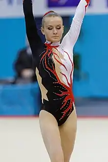 Kateryna Bilokon (born March 12, 1998) is a Ukrainian female acrobatic gymnast. With partners Olena Karakuts and Nadiia Kotliar, Bilokon competed in the 2014 Acrobatic Gymnastics World Championships.[1]