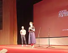 ![]() Kateryna Gornostai presents her film Stop-Zemlia at the 12th Odesa International Film Festival | |