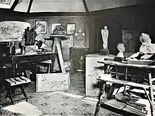 Katherine Wallis was born in 1861 outside of Peterborough, Ontario, in a small town called Merino. Although Wallis, and her sister Adah, grew up on a farm they were encouraged to pursue their art. Each member of the Wallis family was artistically gifted including her mother who enjoyed music and singing.[2] Wallis role models were her mother's friends, including Catharine Parr Traill, her sister Susanna Moodie and the painter Anne Langton.[2] For a brief time, Wallis attended the Toronto Art School known today as OCAD University, but in the late 1800s there were few options for women practicing art professionally. During this time, women were not permitted to take life drawing classes with nude models. Langton told the Wallis sisters, "If you wish to obtain your dream, you cannot stay here."[2] At this early time, Katherine Wallis had not yet realized she was interested in sculpture, but she knew that opportunities for female artists in Canada were limited.