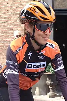 Katharine Hall (born January 6, 1987) is an American former professional cyclist, who rode professionally between 2014 and 2020, for the UnitedHealthcare,[4][5][6][7][8][9][10][11] and Boels–Dolmans teams.[12]