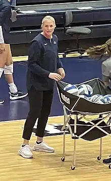In her first season as Penn State's head coach in 2022, the team went undefeated in its pre conference season, starting at 11–0,[4] despite having lost 7 starters from the previous season to graduation or transferring.[5] Penn State went 13–7 in conference play, finishing in 5th place.[6] Furher, in 2022, she coached several players to conference and national recognition. In the Big Ten, senior outside hitter Kashauna Williams and junior middle blocker Allie Holland were named to first team, while senior setter Seleisa Elisaia were named to the second team. Freshman outside hitter Alexa Markley rounded out conference awards by being named to the All-Freshman team, and graduate student middle blocker Katie Clark earned the sportsmanship honor.[7] Penn State went 13–7 in conference play, finishing in 5th place. In the NCAA postseason, Penn State earned the #4 seed in the Wisconsin regional. She was the only first year head coach in 2022 to lead her team to the Sweet 16 in the NCAA tournament. Moreover, Seleisa Elisaia, Allie Holland, and Kashauna Williams were recognized as AVCA all region first team players.
