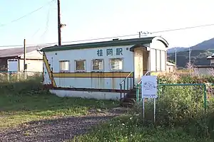 Katsuraoka Station (桂岡駅, Katsuraoka-eki) was a railway station on the Esashi Line in Kaminokuni, Hokkaido, Japan, operated by Hokkaido Railway Company (JR Hokkaido). It opened in 1936 and closed in May 2014.