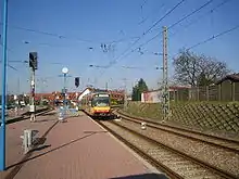 The Katzbach Railway (German: Katzbachbahn) is a branch line in southwestern Germany from Bruchsal to Odenheim that opened in 1896, and was extended in 1900 to Hilsbach. In 1960 services between Tiefenbach and Hilsbach were withdrawn, in 1975 the section between Odenheim Ost and Tiefenbach followed and, in 1986, the 600-metre-long section from Odenheim station to Odenheim Ost was closed. Since 1994 the line has been operated by the Albtal-Verkehrs-Gesellschaft (AVG), who electrified it in 1998 and integrated it into the network of the Karlsruhe Stadtbahn.
