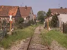 A cycle path that runs on the route of the old line begins on the other side of the street immediately after the current end of the line at Odenheim. Only a few metres after the start of the closed section there is a train signal, which was forgotten during the dismantling of the line. Near the next level crossing was the location of Odenheim Ost station, which was the end of the line from 1975 to 1986. At the eastern edge of Odenheim, the line was demolished over a length of about three hundred metres for the realignment of state highway 552.