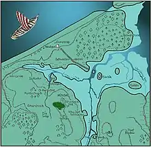 Following the decline of Truso to the south and Grobin to the north in the course of the century, Kaup succeeded them as the principal regional colony of Swedish merchants from Birka.[2] It was superbly sited along the sand-barred shore particularly rich in amber, hidden from potential enemies within a bay "where islands, shoals, and complicated channels made the approach slow and observable".[3]