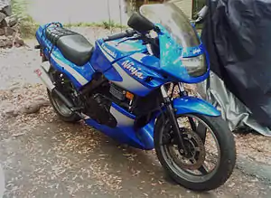 The Kawasaki Ninja 500R (which was originally named, and is still referred to as the EX500 and is known as the GPZ500S in some markets) is a sport bike with a 498 cc (30.4 cu in) parallel-twin engine, part of the Ninja series of motorcycles manufactured by Kawasaki from 1987 to 2009, with a partial redesign in 1994. Although the motorcycle has a sporty appearance, it offers a more standard, upright riding position with greater comfort and versatility. It provides a combination of performance and low operating costs, which has made it a favorite as a first motorcycle with new riders and popular with experienced riders on a budget. 2009 was the last model year for the Ninja 500.[2]